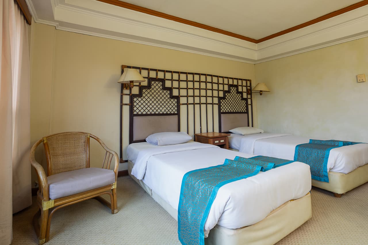 Our Superior Vintage 24 m2 with twin bed, free WiFi, bathroom with shower and 14″ TV supported with selected international tv channels. The room features tile flooring. Extra bed will be provided with an additional charge.