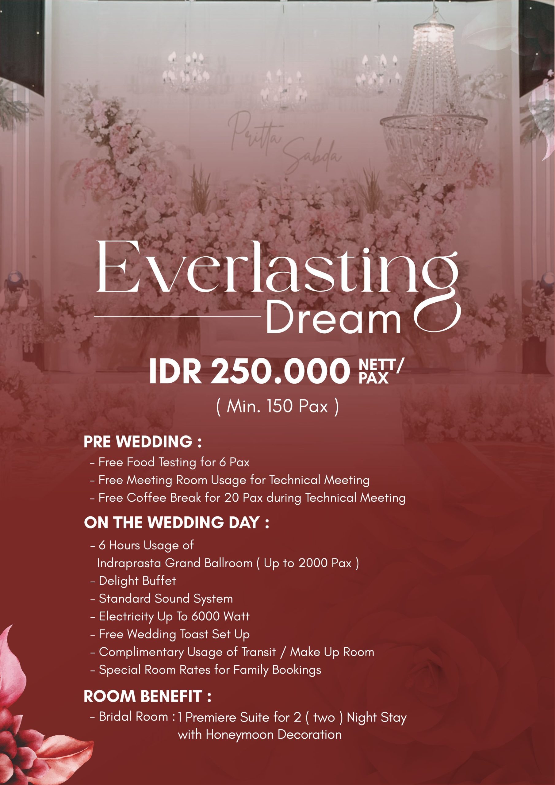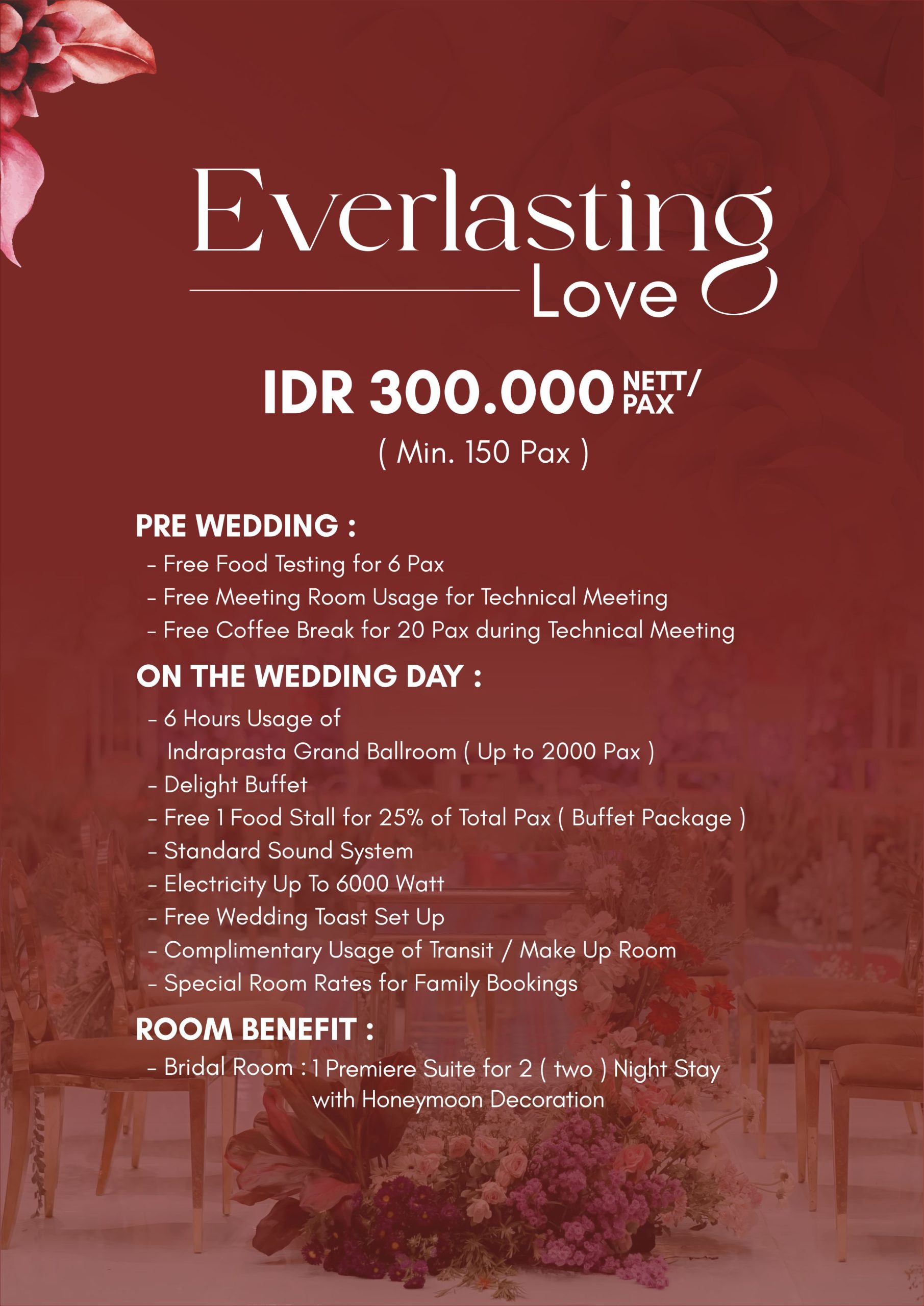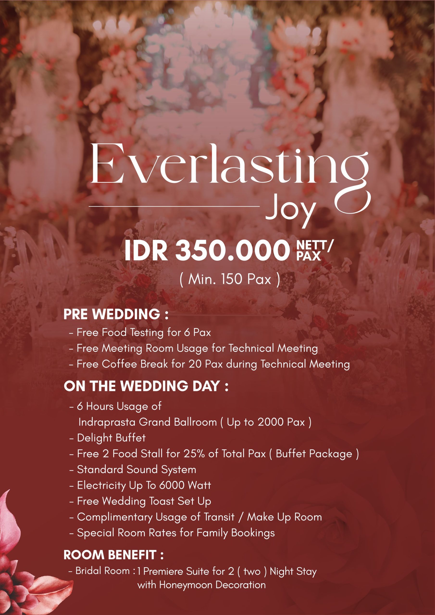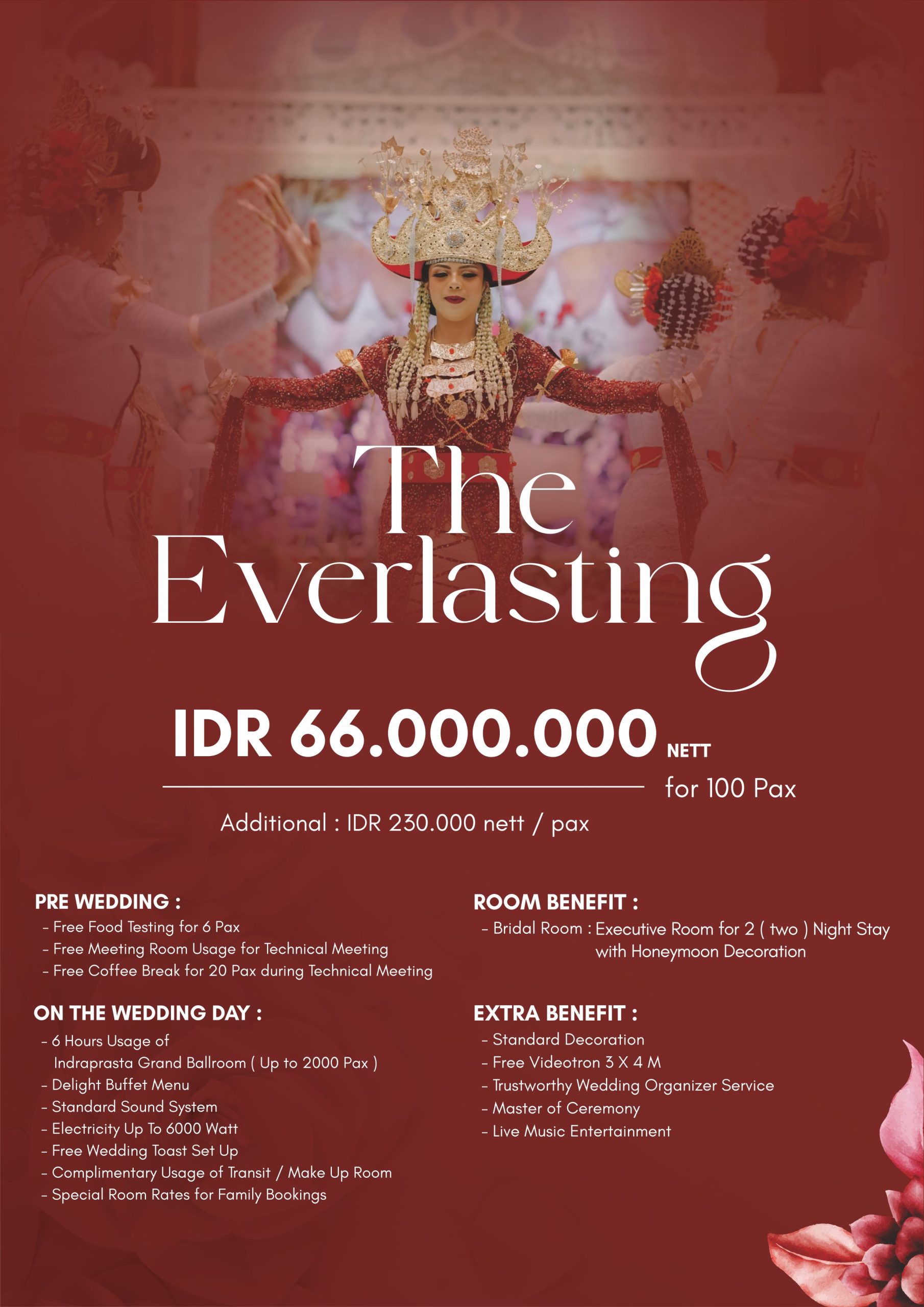 Celebrate your once in a lifetime occasion at beautiful wedding venues in Yogyakarta. From engagement to wedding receptions our professional team will ensure unforgettable experiences for you and your loved one.